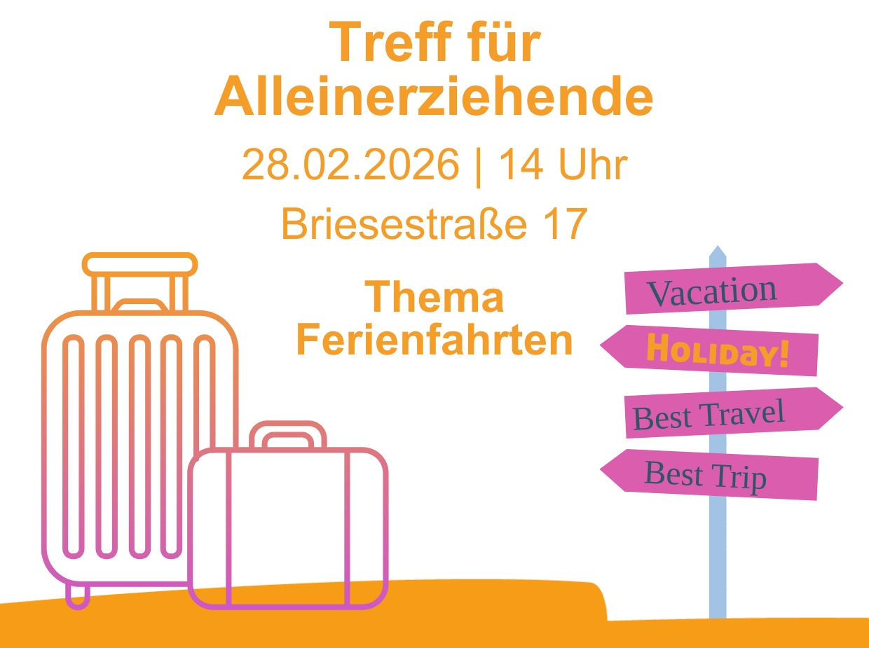 Auch im Februar laden wir alle Neuköllner Alleinerziehenden und ihre Kinder herzlich zu unserem Treff in der Briesestraße 17 ein. In entspannter Atmosphäre, bei Kaffee und Keksen, möchten wir miteinander ins Gespräch kommen und Raum für Austausch schaffen.