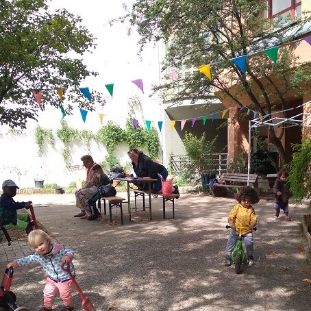 Programm für Eltern und ihre Kinder draußen im Hof*
